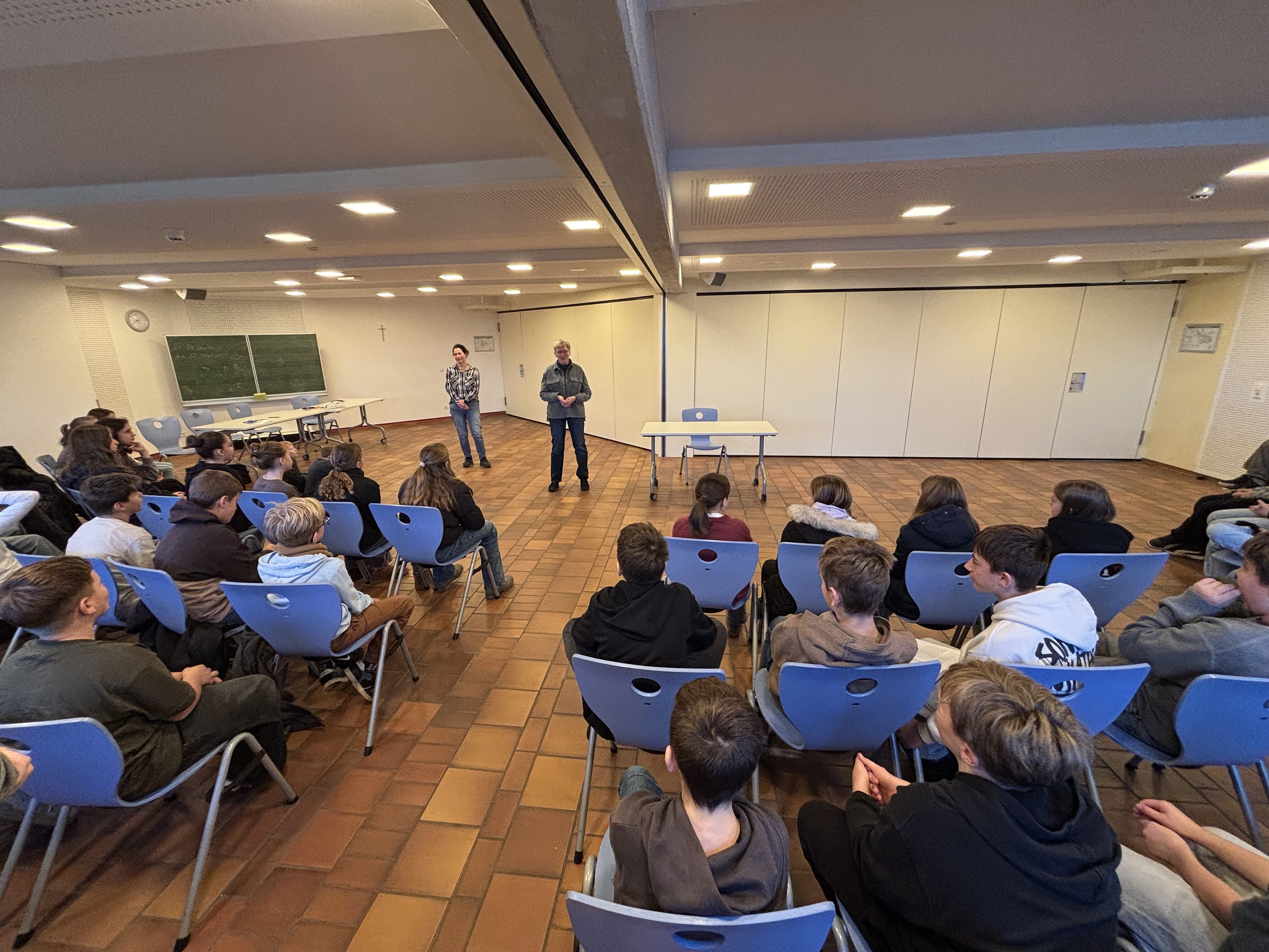 "Erhebt eure Stimme! Sternsingen für Kinderrechte!" So lautet das Thema der diesjährigen Sternsingeraktion 2025. Die Kinder aller drei 6. Klassen bekamen in diesem Modul von Fr. Nitsche (Bibliotheksleitung) und jeweils einer Lehrkraft im Wechsel Hintergrundinformationen zu verschiedenen Sternsingerprojekten sowohl in der Turkana (Afrika) als auch in Kolumbien. Darüber hinaus überlegten die Schülerinnen und Schüler, wie sie an unserer Schule mit dazu beitragen können, dass unsere Menschenrechte, unsere Kinder- und Jugendrechte gewahrt und geschützt bleiben und an wen sie sich bei Problemen wenden können. Zum Abschluss berichteten die Kinder noch über ihre eigenen Erfahrungen beim Sternsingen und teilten ihr Wissen mit ihren Mitschülerinnen und Mitschülern.