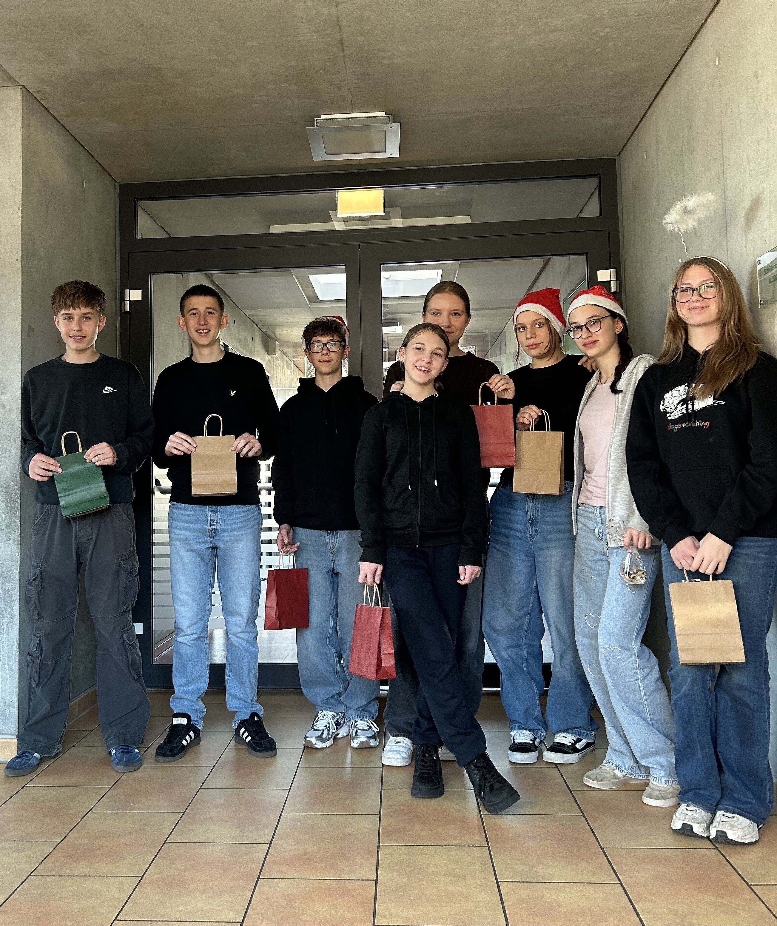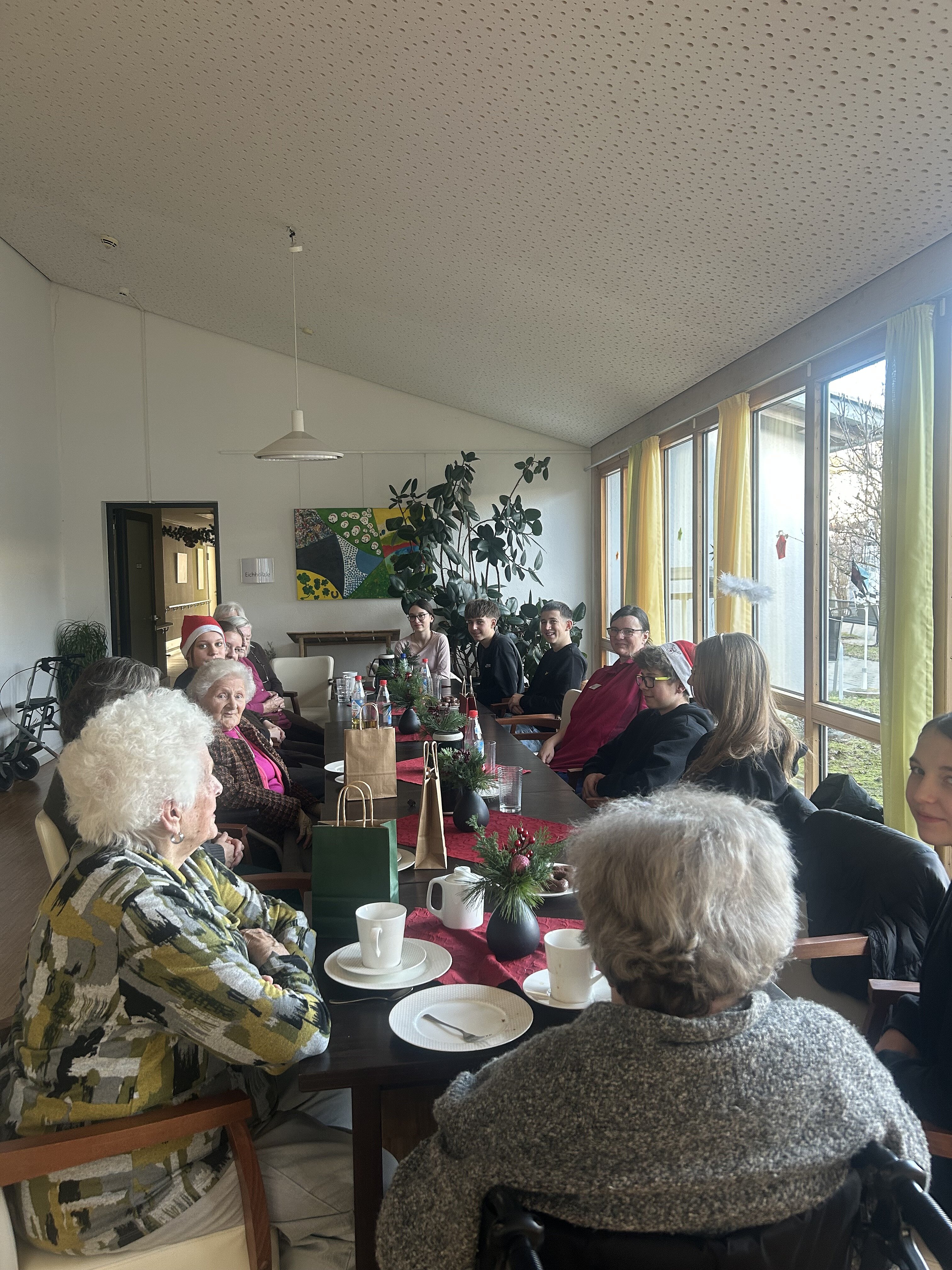 Am Montag, den 15. Dezember 2025 überraschte die Schülercafé-AG der Klassen 9 die Seniorinnen und Senioren im Pflegeheim St. Johannes in Waldstetten. Sie überreichten bei einer gemütlichen Teestunde kleine Überraschungstütchen mit liebevoll gestalteten Weihnachtskarten und selbstgebackene Plätzchen. Beim gemeinsamen Tee trinken und Snacken kam man miteinander ins Gespräch. Entspannt und zufrieden und mit gutem Gefühl, älteren Menschen eine Freude bereitet zu haben, verließen die Schülerinnen und Schüler das Pflegeheim St. Johannes.